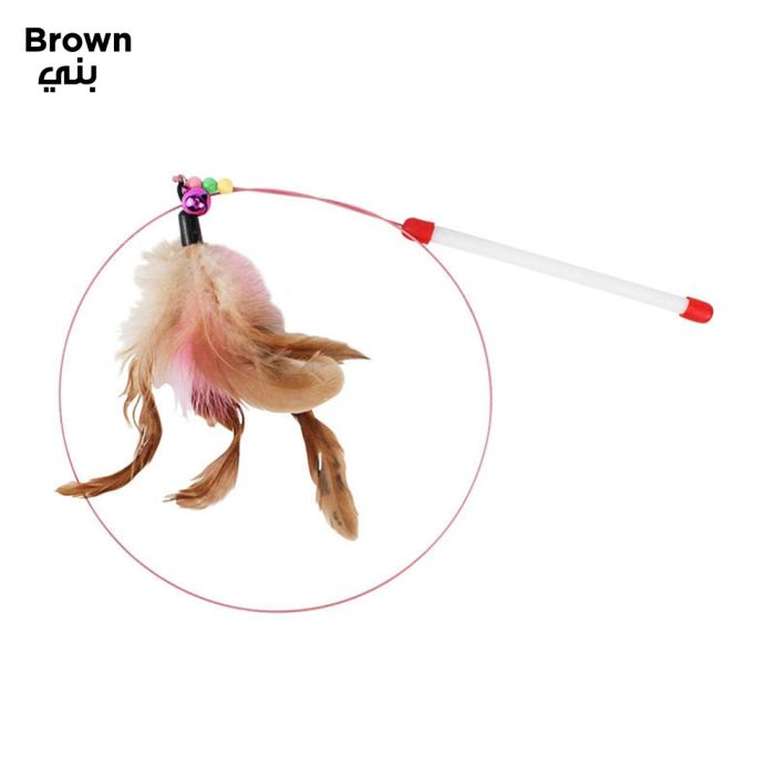 - Cat Feather Fishing Stick Toy Teaser - Brown