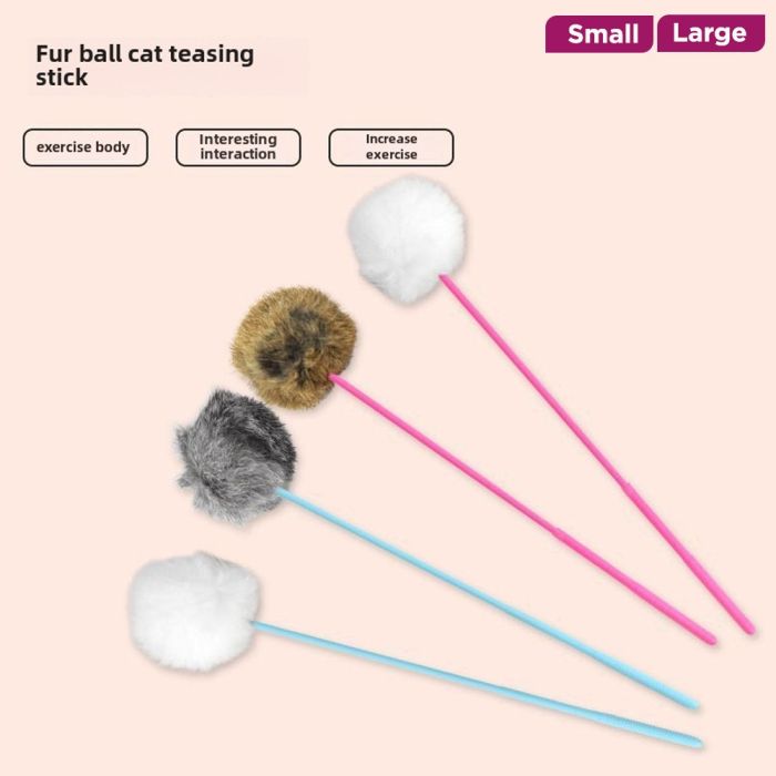 - Cat Fury Ball Fishing Stick Toy Teaser - Large
