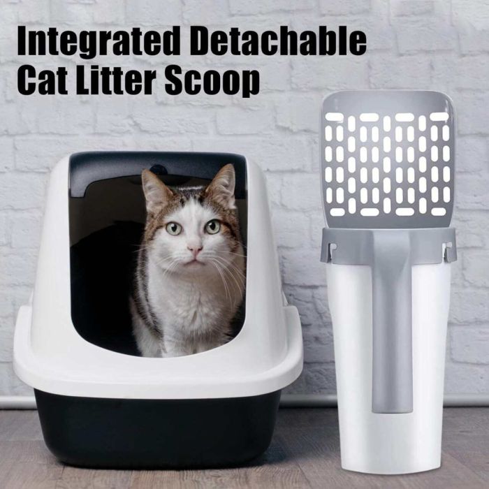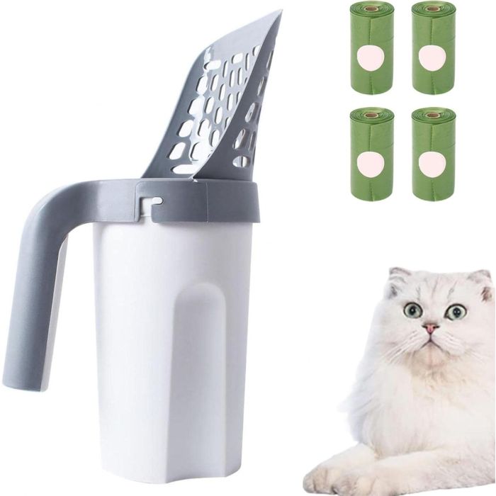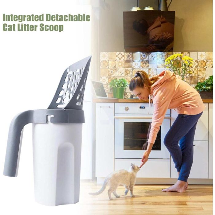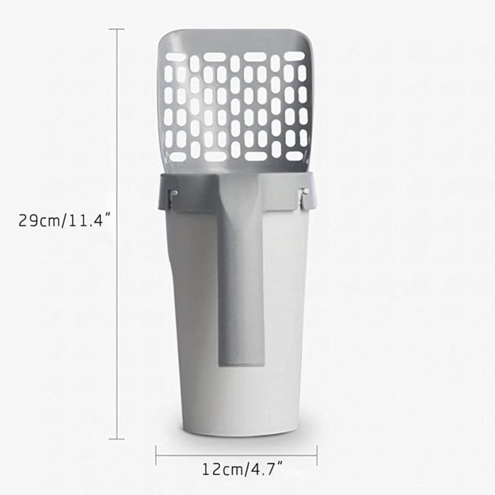 - 3-in-1 design includes a scoop, holder, and litter bag for convenience.