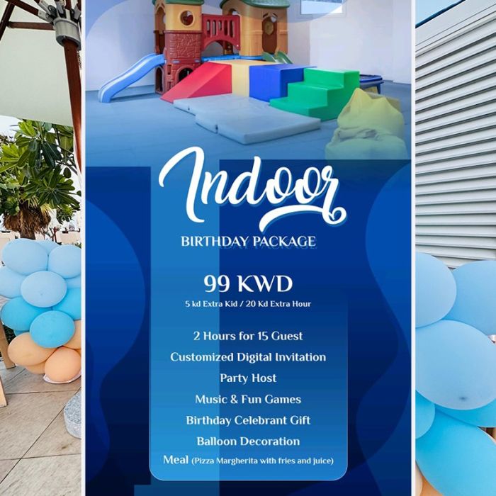 Package include: 2-Hour Celebration + E-Invitation + Party Host + Music & Games + Decorations + Gifts + Meals