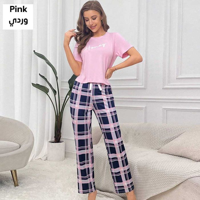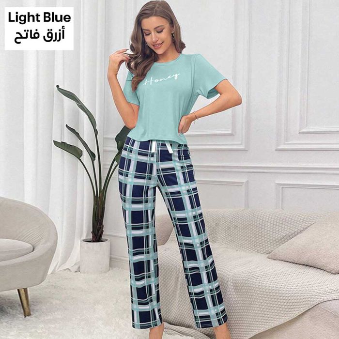 This Comfortable Plaid Home Pajamas for Women Made of Light and Comfortable Fabric with Short Sleeves and Nine-foot Shorts (capri). This Pajama Features a Classic Plaid Pattern and a Loose Fit That Ensures Optimal Comfort for Sleeping or Lounging Around the House. It is a Stylish and Comfortable Piece That Maintains Its Quality, and is the Perfect Choice for Summer Weather, Providing You with a Comfortable and Beautiful Sleeping Experience.