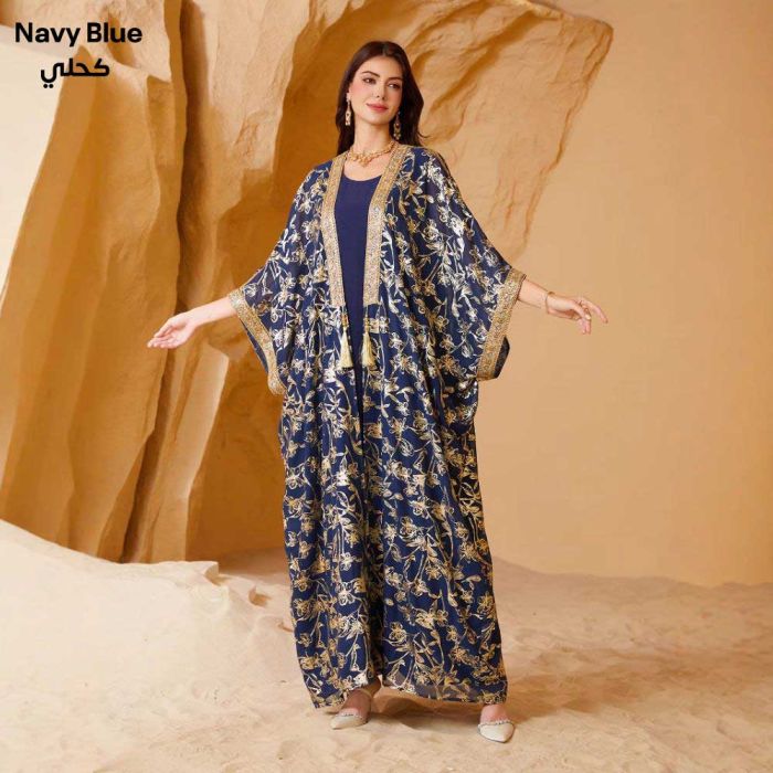 This Two-Piece Chiffon Kaftan for Women made from lightweight polyester material, offering a refined flowing look, the chiffon abaya adds a luxurious touch, a harmonious design suitable for occasions and evening events with confident elegance