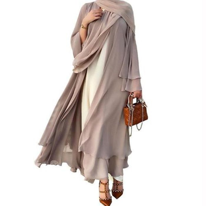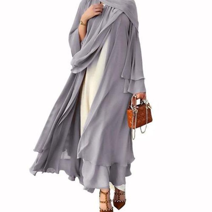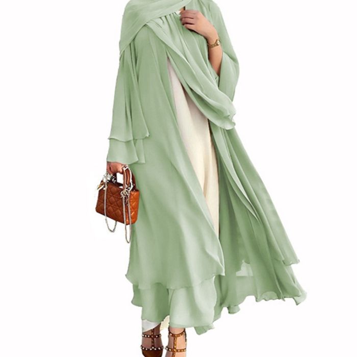 - Chiffon Dress Cardigan with Headscarf Set for Women