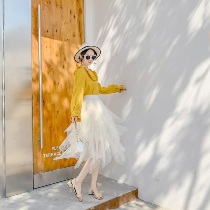 This Soft High-waisted Chiffon Skirt for Women Made of Soft, Flowing Chiffon That Provides a Fluid Look. It Features a High Waist That Sculpts the Waist and Elongates the Figure. the Midi Length Makes It Ideal for Everyday Wear, Maintains Its Quality and Flowing Shape, and Adds a Soft, Feminine Touch.