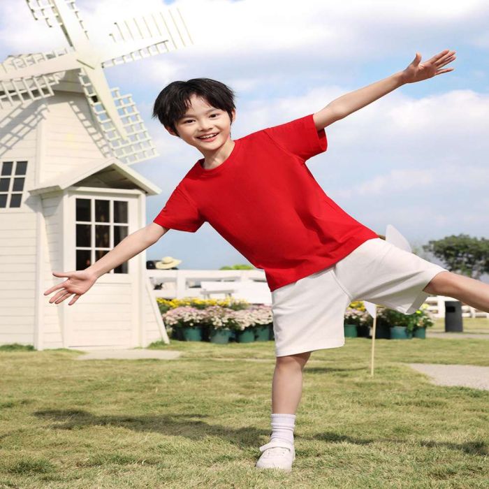 This children's cotton t-shirt is crafted from premium cotton, offering comfort and softness for your child's skin. Its stylish design with short sleeves and a round neck adds a touch of charm to the little ones' look. Featuring an antibacterial property, it ensures cleanliness and protection throughout the day. Perfect for daily activities at school or play, thanks to its high quality that guarantees durability and comfort with every move.