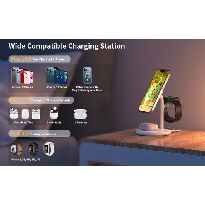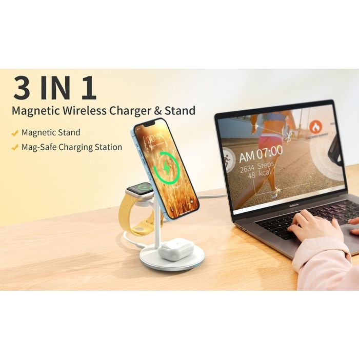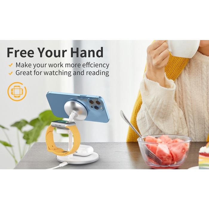 Organize your desk, and keep your iPhone, AirPods, and AppleWatch thanks to this Choetech 3-in-1 magnetic wireless charging stand! Can charge your iPhone, AirPods, and Apple Watch at the same time.