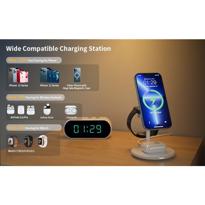 - Save Space for your office desk, one charger charges 3 devices Simultaneously