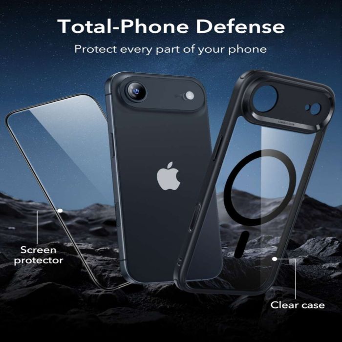 This durable magnetic case is engineered to deliver strong protection, stable MagSafe performance and long-lasting clarity for the iPhone 17. With enhanced drop resistance and reinforced edges, it shields the device from impacts and scratches while maintaining a sleek clear black finish. The optimized magnetic alignment ensures fast and effortless wireless charging, and the included UltraFit tray enables smooth, bubble-free screen protector installation. A precise lens protector with an alignment tool provides complete and secure camera coverage, creating a seamless all-around protection experience.