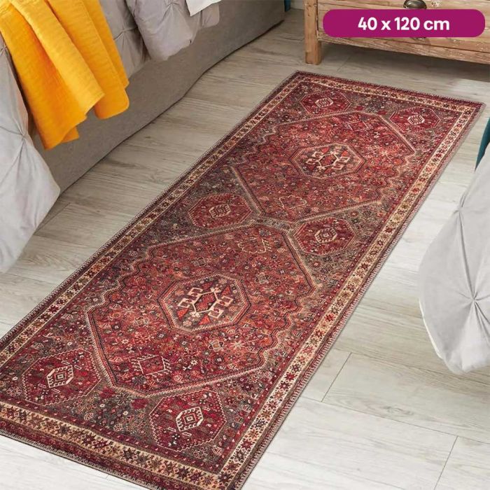 This retro pattern long thin anti-slip carpet is designed to bring both style and comfort to your home. Made from durable polyester with a soft surface, it absorbs water while protecting the floor. The non-slip dotted backing keeps it firmly in place, making it safe for corridors, kitchens, or bedrooms. Its retro printed design adds elegance, while its lightweight structure makes it easy to fold, clean, and maintain for everyday use.