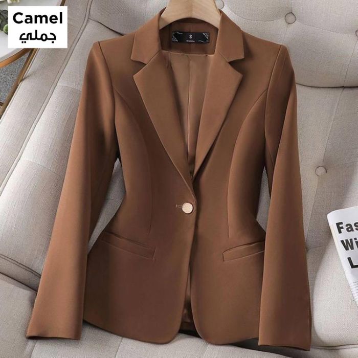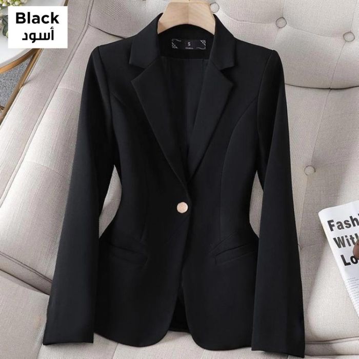 This Elegant Slim-fit Blazer Jacket for Women is Crafted from Premium Fabric and Features a Chic Korean Design. It Features a Slim Fit That Accentuates the Beauty of the Figure and Adds a Professional and Aesthetic Appearance. It is Flexible and Comfortable to Wear, and Maintains Its Quality and Neat Shape. It is an Essential Piece That Supports Daily Elegance.