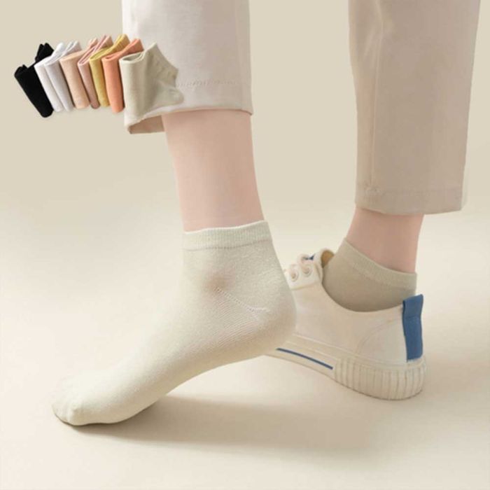 These cotton socks for women are made from pure cotton, ensuring all-day comfort and optimal breathability. Their non-slip athletic design makes them the perfect choice for daily activities. With sweat-absorbing properties, the socks provide a refreshing and dry feeling, making them ideal for summer. The solid color adds a touch of elegance and simplicity, making them a perfect addition to your wardrobe.