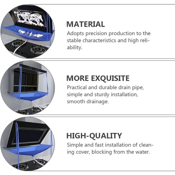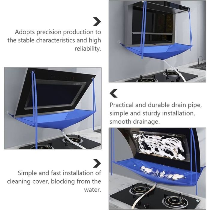Cooker hood cleaning cover helps you to easily clean without soiling the walls and counter tops. It is designed to protect your kitchen from splashes while cleaning.