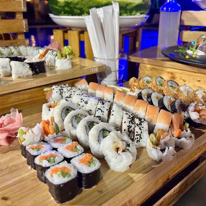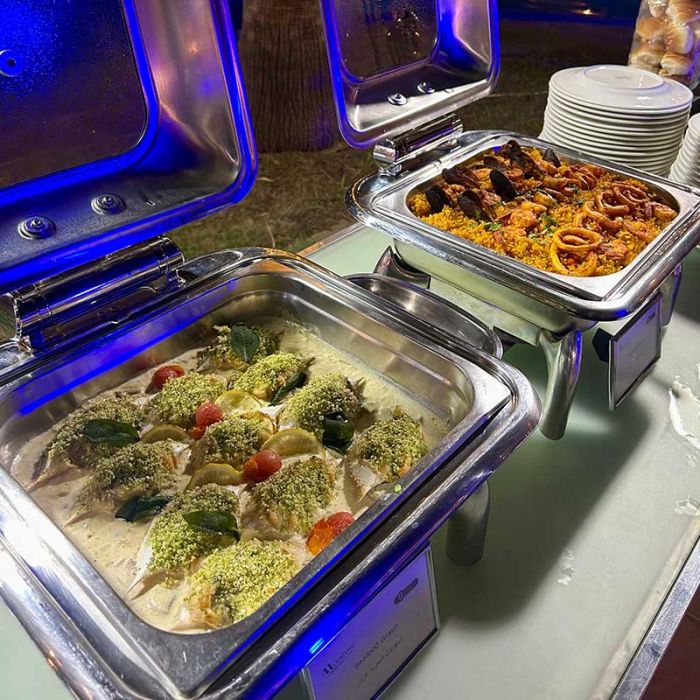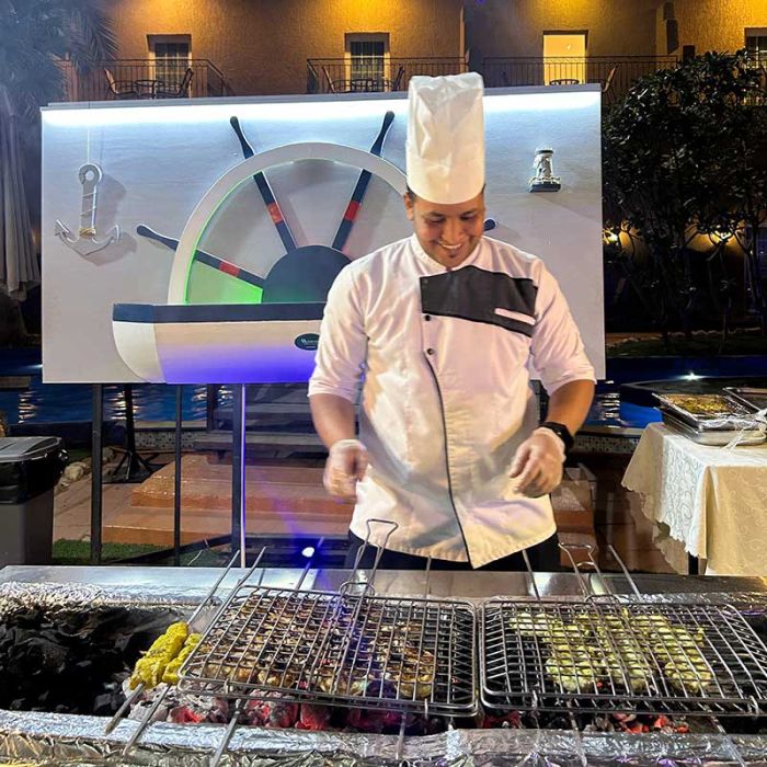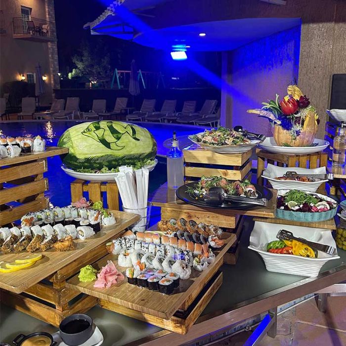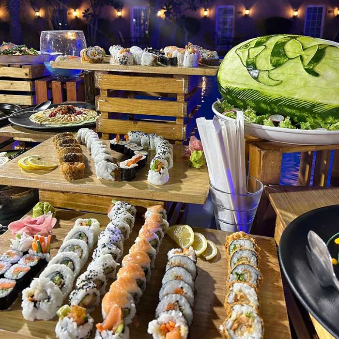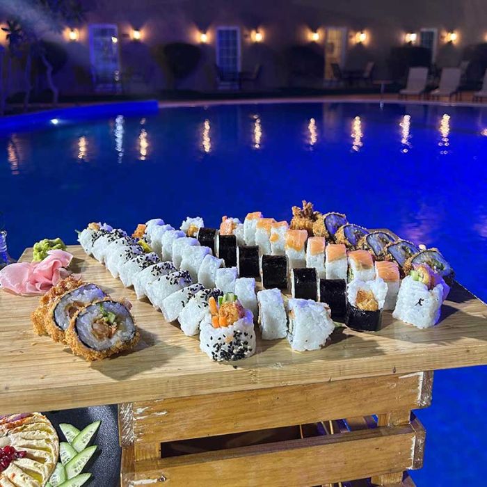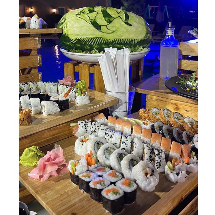 Join us every Thursday and enjoy the International seafood dinner buffet by the pool including sushi , live grill seafood at Bay's Restaurant - Montrose Hotel - Free Zone.