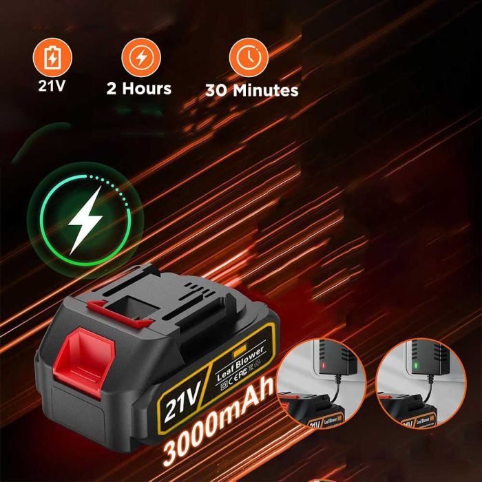 - Battery specification: 21V, 2×3000 mAh.