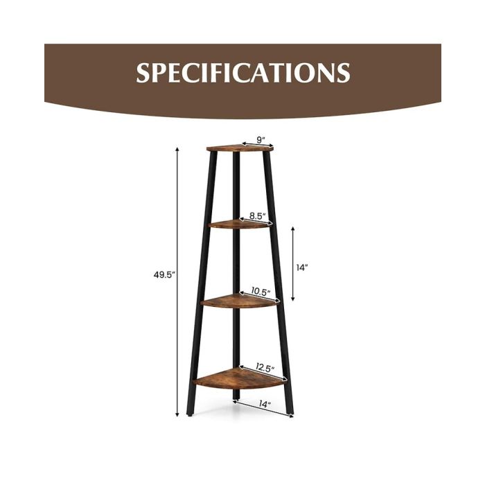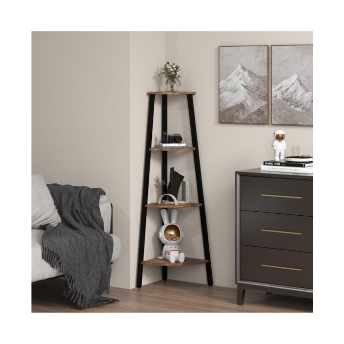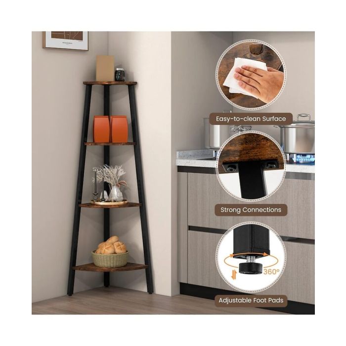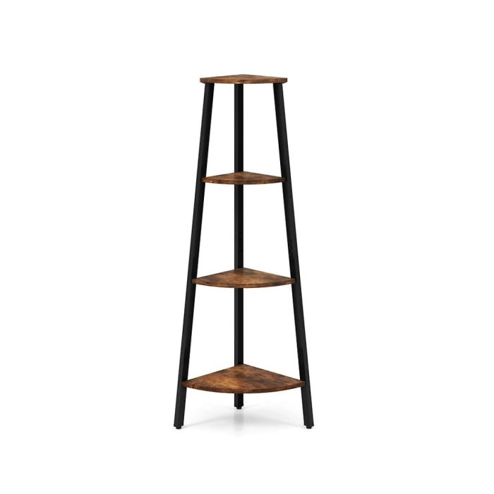 Enhance your living space with this reliable and stylish 4-tier corner storage shelf, constructed from high-quality boards and a heavy-duty metal frame for lasting durability. Its industrial design adds a touch of style to any room, making it a versatile addition to your home