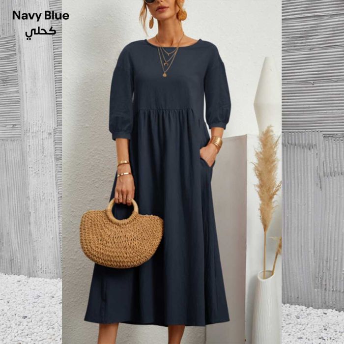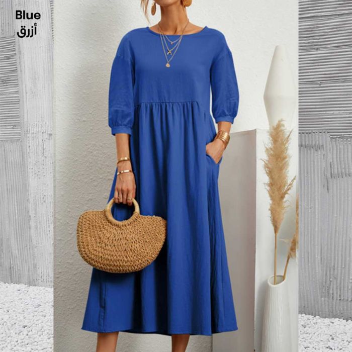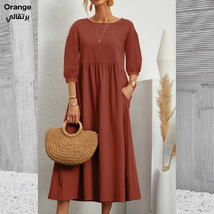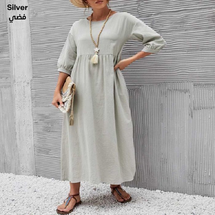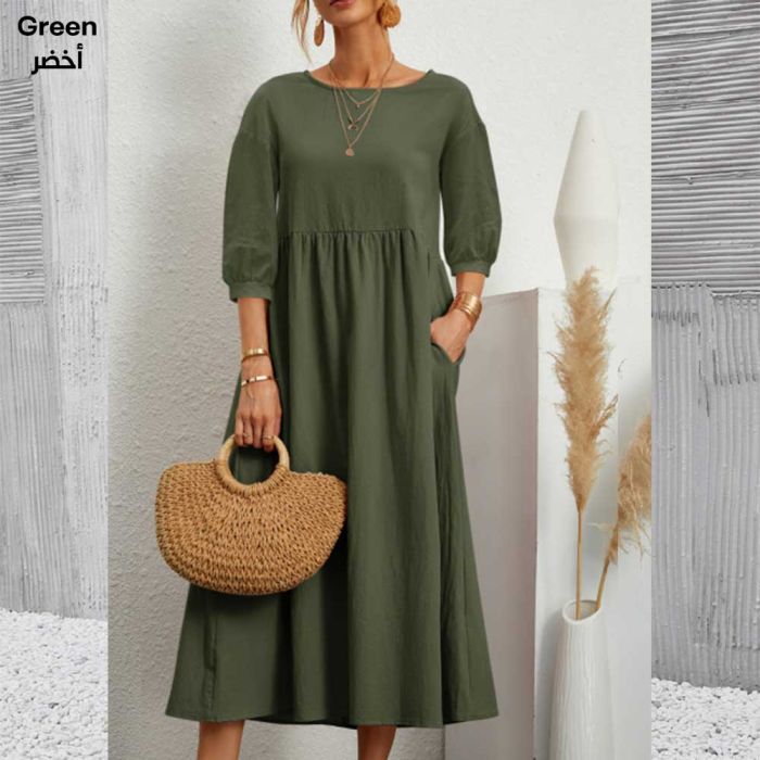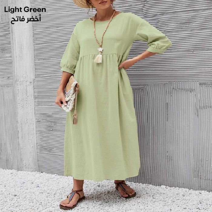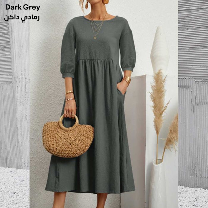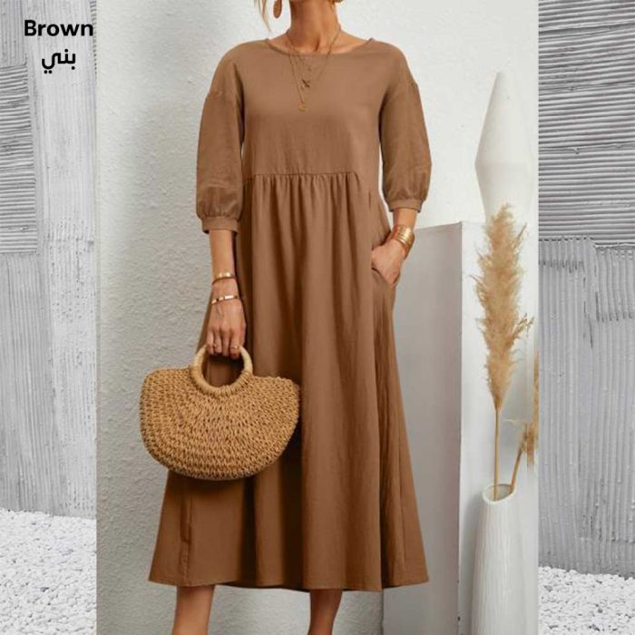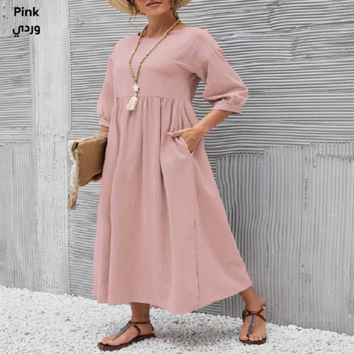 - Cotton and Linen Loose Dress with Pockets for Women