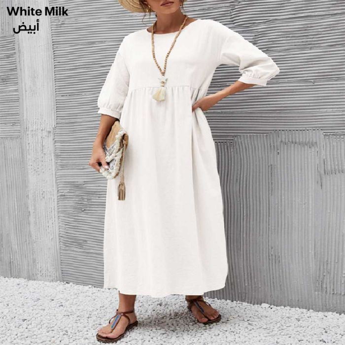 This Dress Combines Comfort and Elegance, Thanks to Its Loose Fit, Crafted from High-quality Cotton and Linen, Making It Ideal for All-day Wear in Hot Weather. It Features Practical Pockets for Easy Storage of Small Items, While Remaining Modern and Suitable for Everyday Wear or Outings. Its Natural Fabrics Feel Fresh Against the Skin, Offering a Perfect Blend of Attractiveness and Comfort in One Piece.