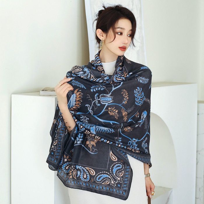 Cotton Linen Flower Design Scarf for Women 85 x 180 cm