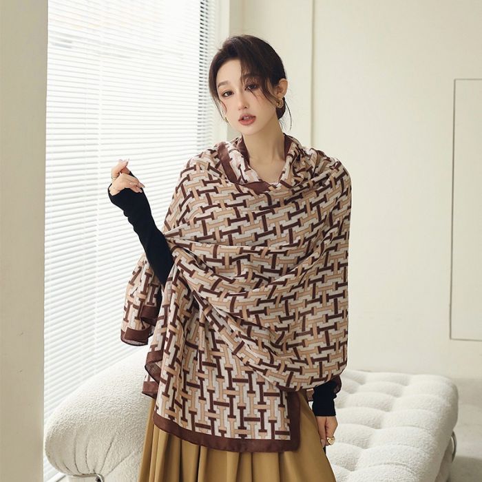 Cotton Linen H Design Scarf for Women 85 x 180 cm