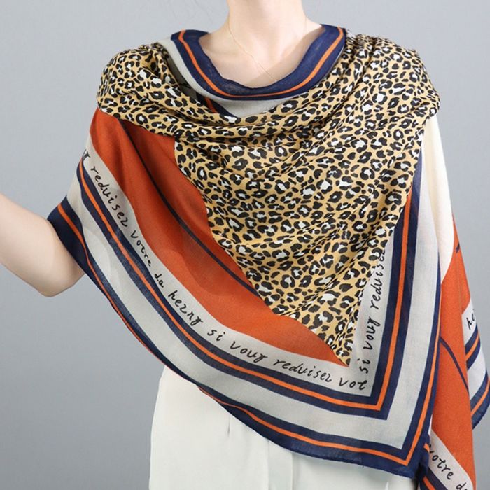 Cotton Linen Leopard Print Scarf for Women 85 x 180 cm