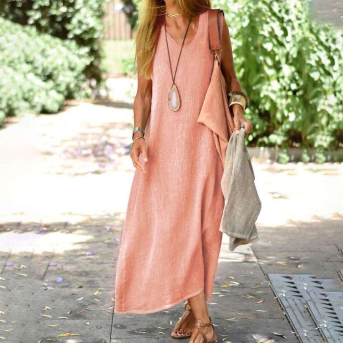 This Elegant Women's Cotton and Linen Dress. Made from a Breathable Cotton and Linen Blend, This Dress Features a Modern Loose A-line Silhouette and a Slim Waist, Perfect for Everyday Summer Wear. It Offers Superior Comfort and Maintains Its Quality. It Exudes a Calm and Natural Elegance, Making It the Perfect Choice for Those Who Prefer a Simple and Comfortable Style.