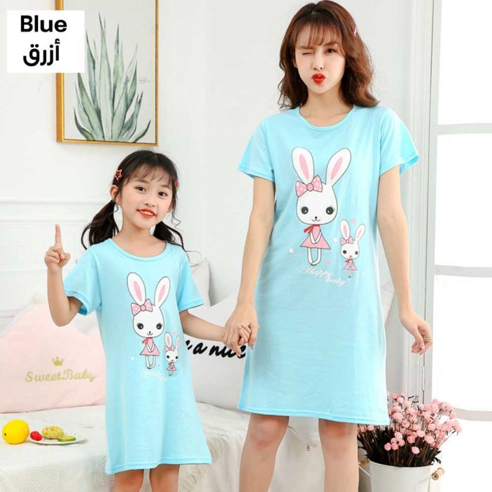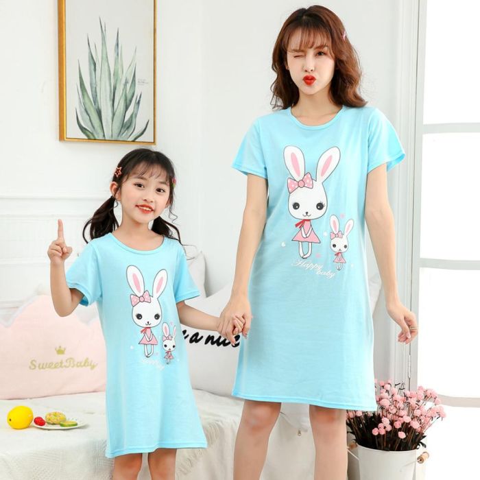 This Girls' Cotton Nightgown Made of Pure Cotton, Soft and Skin-friendly. This Short-sleeved Summer Nightgown is Suitable for Children and Mother-daughter Sets. Cotton Ensures Superior Comfort and Breathability During Sleep, Making It the Perfect Choice for Quiet Summer Nights. It Also Features Attractive, Childlike Prints That Add a Touch of Joy to Bedtime, and Maintains Its Quality and Color After Repeated Washing, for a Comfortable and Beautiful Sleeping Experience.