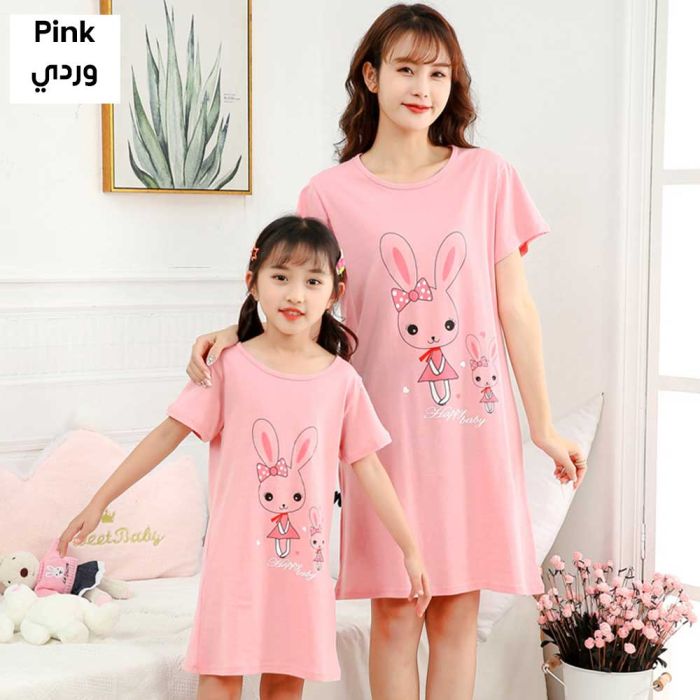 - Cotton Sleep Dress with Rabbit Design for Girls