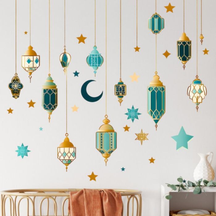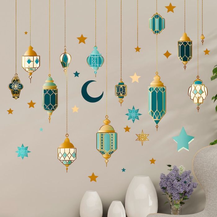 This Decorative Hanging Lanterns Wall Sticker made from PVC, adds an elegant aesthetic touch to walls, featuring visually soothing details and a calming design, suitable for living rooms, entrances, and bedrooms, easy to apply and enhances the space with a warm harmonious look