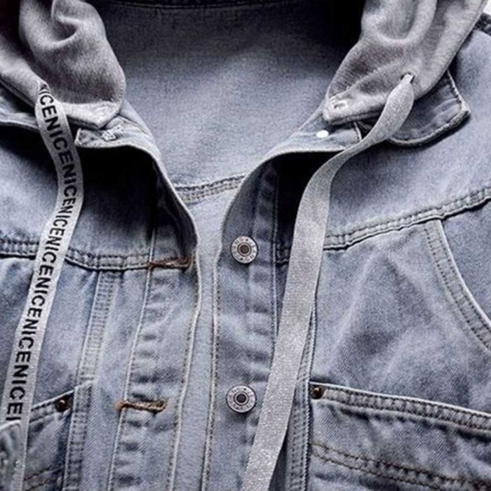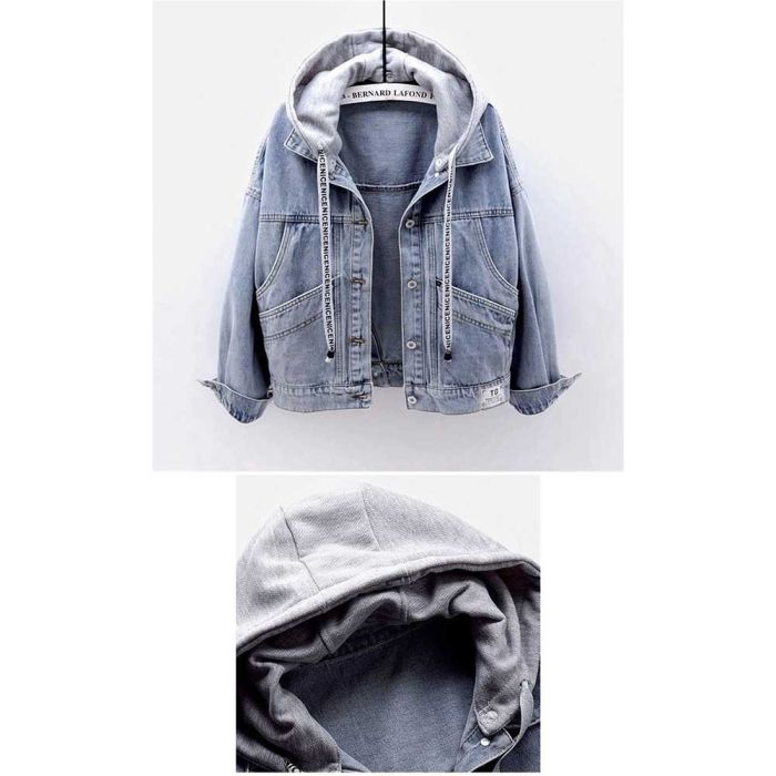 - Denim Hooded Multi Pocket Jacket for Women