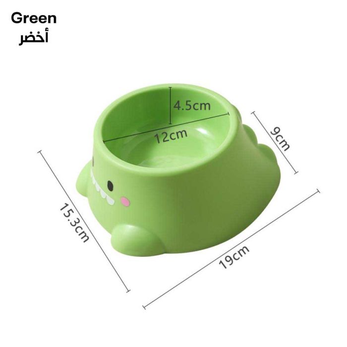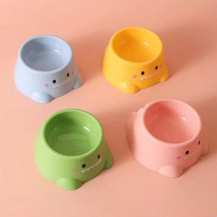 Dinosaur Design Pet Food Bowl crafted from durable material, featuring a raised structure that reduces spills, with a playful look, suitable for cats and dogs