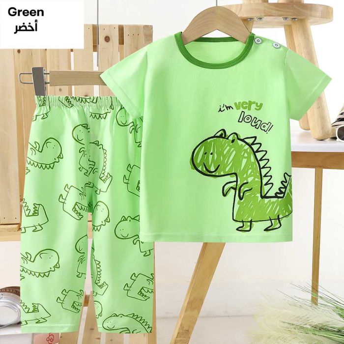 A stylish and comfortable two-piece summer pajama set for children, consisting of a short-sleeved T-shirt and pants. Made from pure cotton for softness and lightness, it features a modern and simple design with a distinctive print that adds a charming touch to your child's look.Today's Deal is Dinosaur Pure Cotton Summer Short Sleeve T-shirt and Pants Pajama Set for Boys