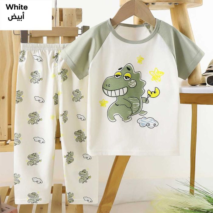 - Dinosaur Pure Cotton Summer Short Sleeve T-shirt and Pants Pajama Set for Boys - (9-12 Months) - White