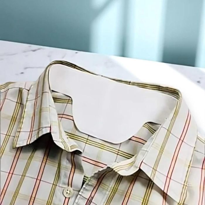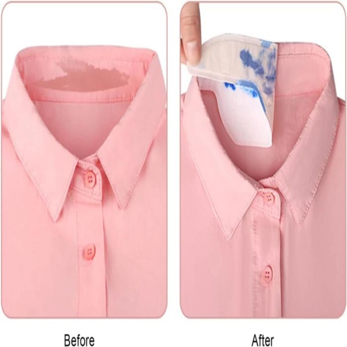 Thin, disposable adhesive strips that absorb sweat and protect shirt collars from stains and odors; easy to use and extremely lightweight.