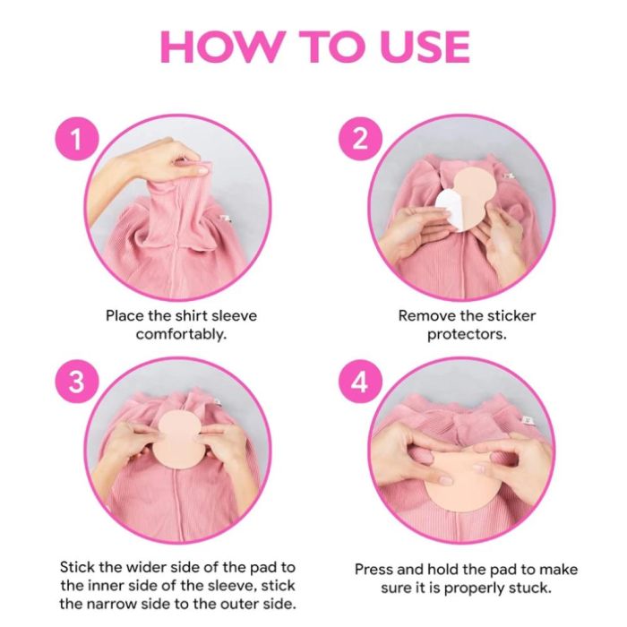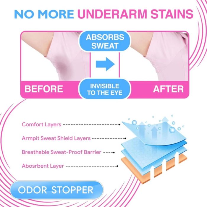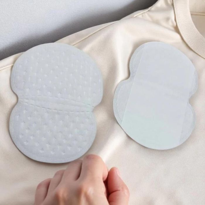 Thin, disposable adhesive patches that absorb sweat and protect clothes from stains; comfortable, discreet, and suitable for men and women.