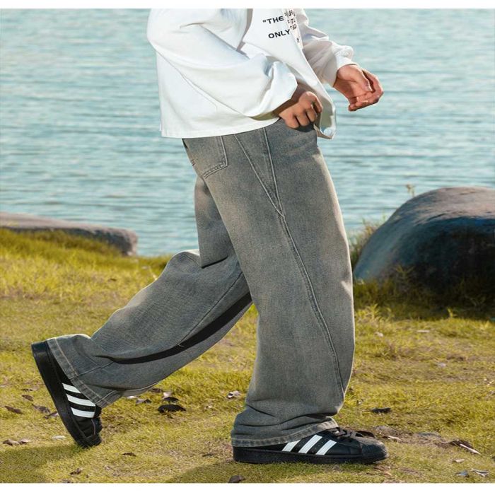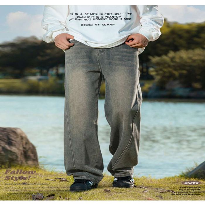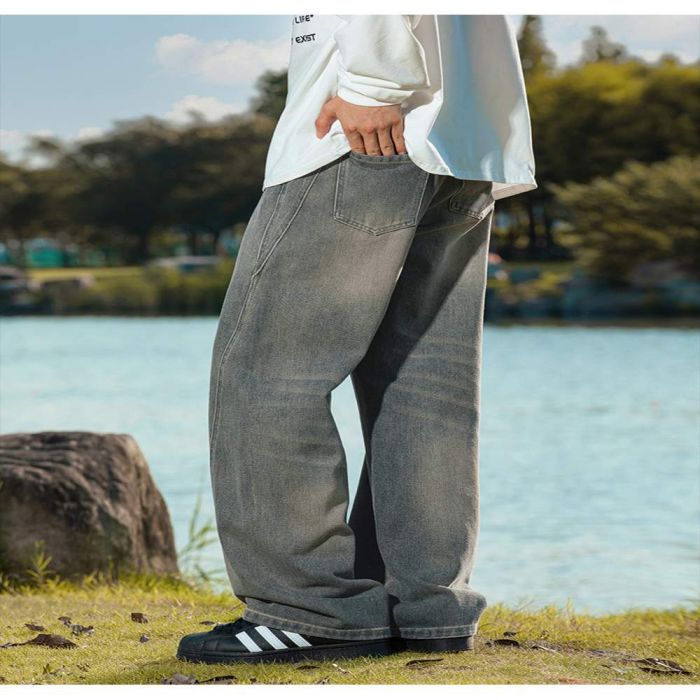This Distressed Wide Leg Denim Pants for Men is made of durable denim fabric, offering a modern distressed look, with a wide fit that enhances comfort and flexibility, delivering a stylish contemporary appearance for everyday wear
