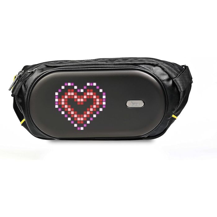 A shoulder bag with pixel art display. Use the exclusive app to display your original designs or text. RGB LEDs allow you to create and display original pixel art designs and animations. 256 colors to choose from when the design is created. You can also create up to 60 animations.