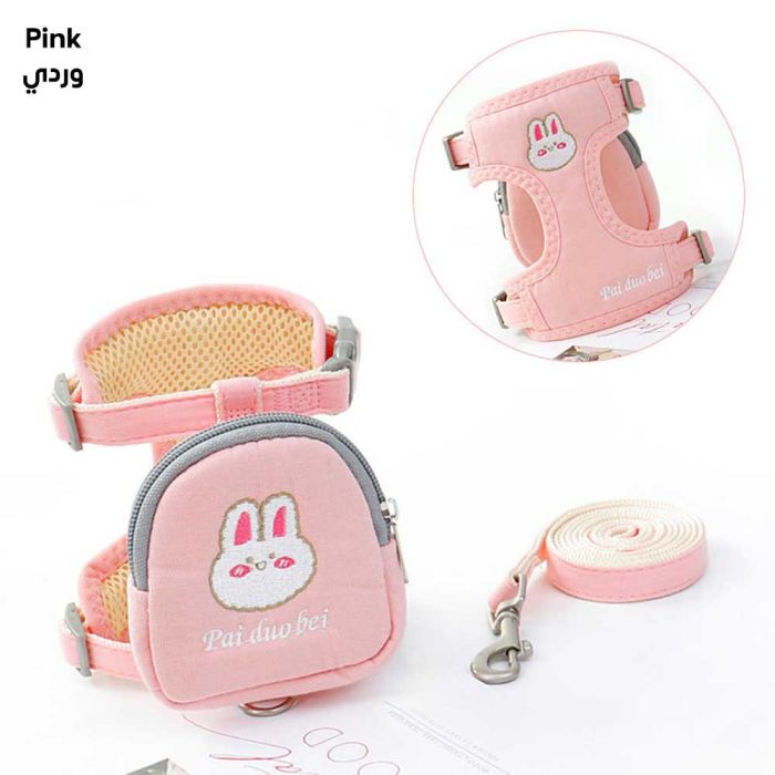 - Dog Harness with Rabbit Backpack and Walking Rope - Small - Pink