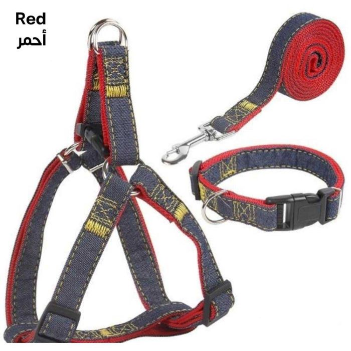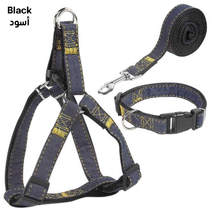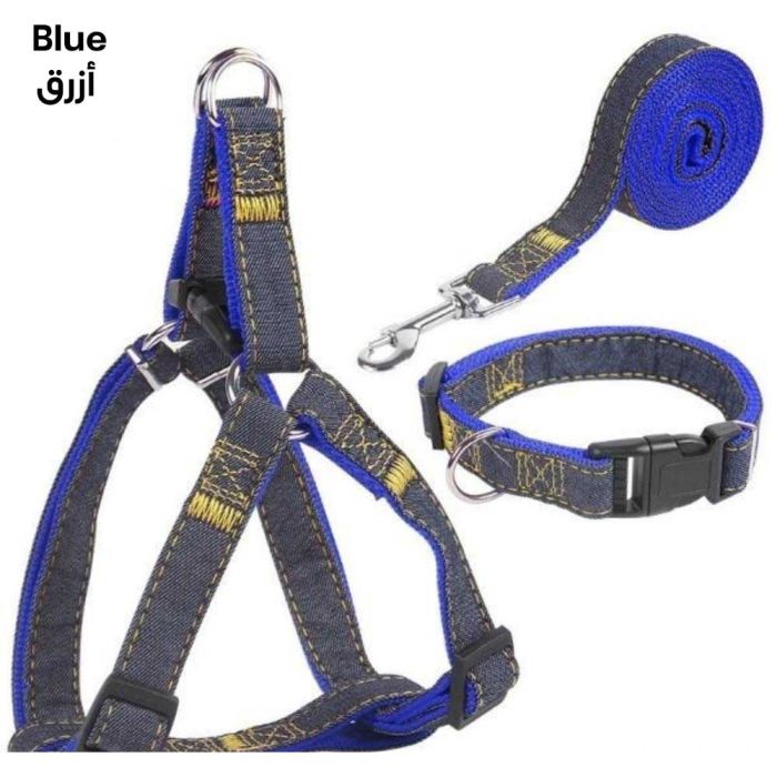 This Dog Leash Harness Collar Set is crafted from durable denim that provide comfortable stability during walks, combining secure support with better control. Its stylish denim design is easy to wear and adjust.