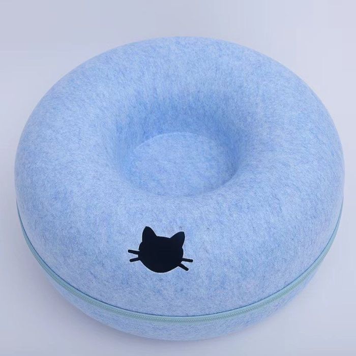 The perfect place for cats to sleep and relax, this semi-enclosed cat house features a unique donut design. Combining comfort and privacy, its semi-enclosed circular shape provides a sense of security and warmth