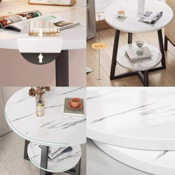 - Double Layer Modern Round Coffee Table Set 60 x 55 cm