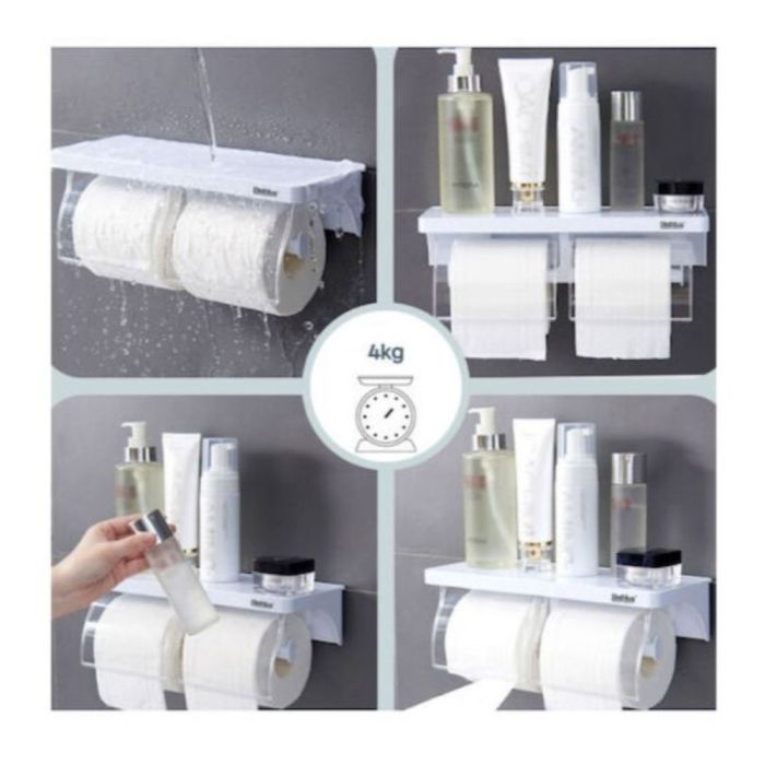 - Double wall-mounted design for neat tissue organization