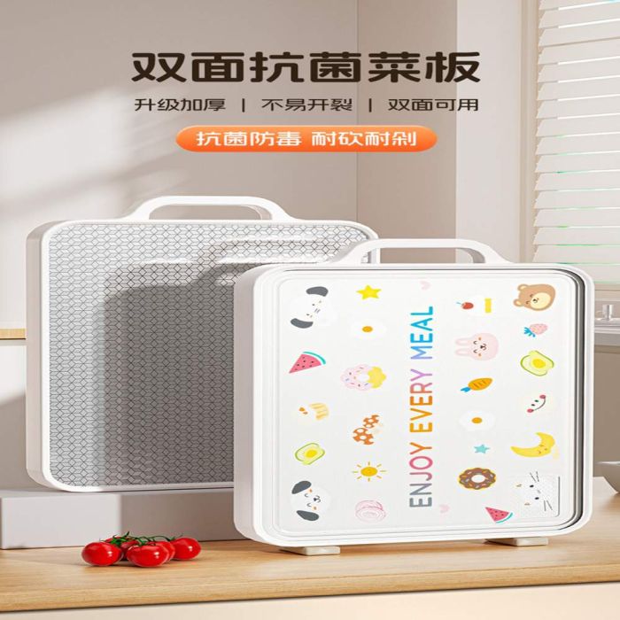This double-sided cutting board is made of durable food-grade materials, providing two separate surfaces for divided use, a stable design that gives you confidence while cutting and keeps your preparation area organized