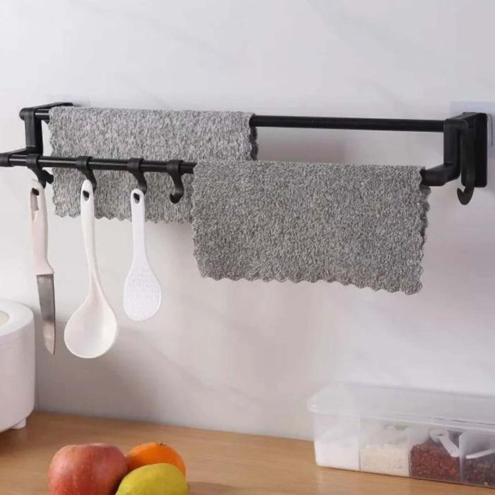 Maximize your space with a multi-functional wall-mounted hanger designed for organization and simplicity. Featuring two stainless steel rails, this sleek rack provides a durable and elegant way to hang towels, clothes, umbrellas, or keys. Its no-drill adhesive installation ensures a hassle-free setup on smooth surfaces, making it perfect for bathrooms, kitchens, or closets. Crafted from premium plastic and stainless steel, it supports up to 5 kg, offering both style and strength in one compact design.