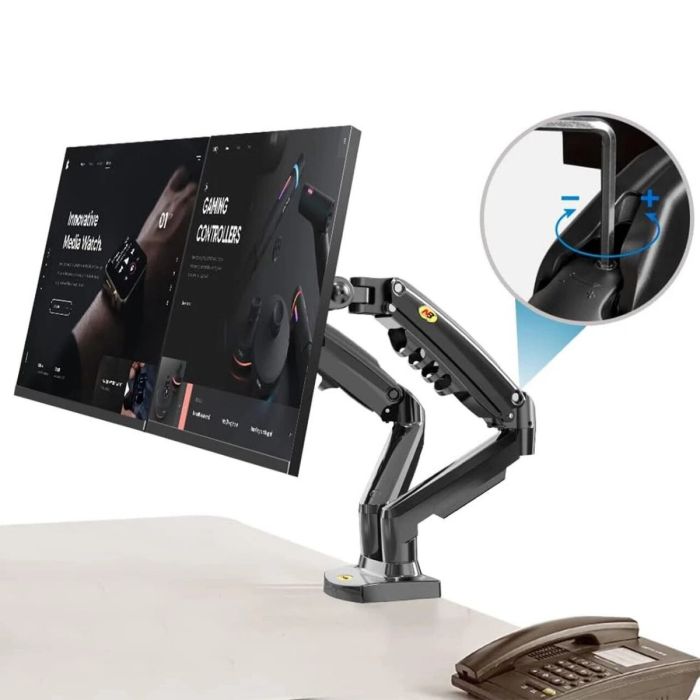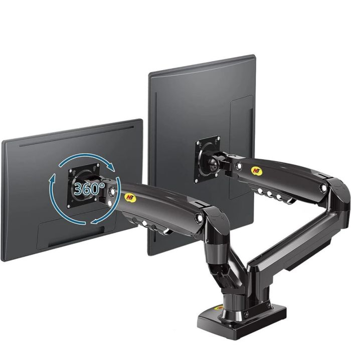 Revolutionize your desk setup with a dual monitor arm designed to support two screens from 17″ to 27″ with smooth, tool-free adjustments. Each arm holds up to 9 kg securely, offering tilt from −30° to +85°, swivel ±90°, full 360° rotation, vertical lift up to 260 mm, and an extension of about 530 mm. With clamp or grommet installation options, the sturdy aluminum build, powder-coated finish, and integrated cable management provide both stability and a clutter-free workspace.
