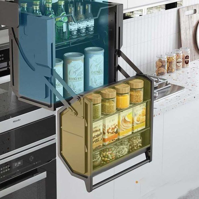 - Dual Pull-Out Wall Mounted Kitchen Organizer