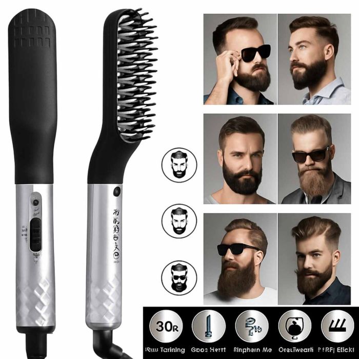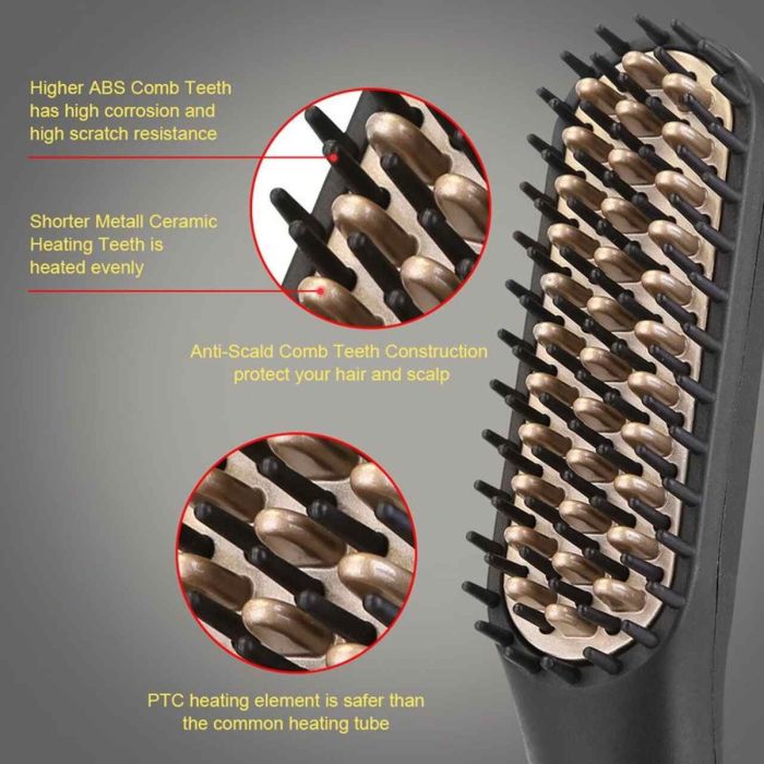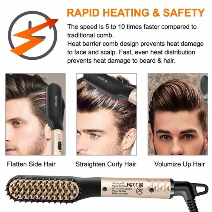 This fast-heating beard straightening comb offers quick and effective grooming with dual temperature settings and a 30-second heat-up time. Its ceramic-coated anti-scald teeth distribute heat evenly while protecting the skin, making it ideal for straightening, shaping and reducing frizz. Designed for comfortable, precise styling, it features a 360° swivel cable and an automatic shut-off function for safe everyday use.