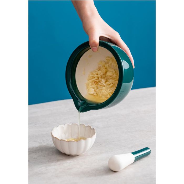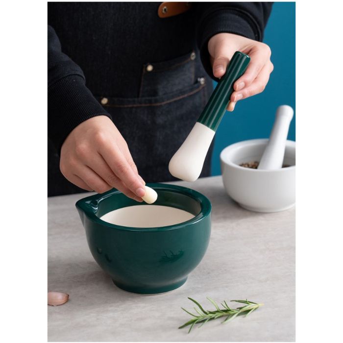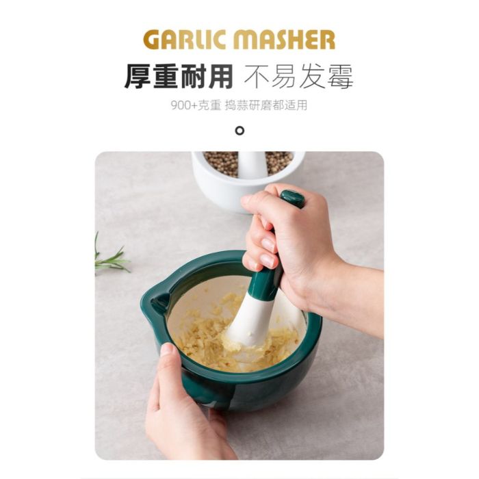 - Dual-Tone Ceramic Garlic Mortar with Textured Inner Surface
