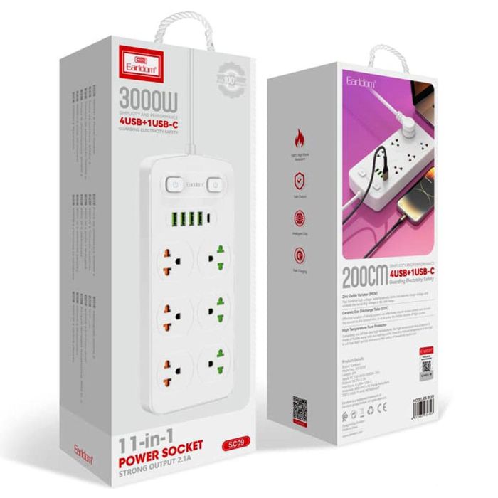 - 6 Sockets Power Extension with 5 USB Ports 2M by Earldom