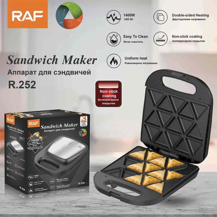 Upgrade your kitchen with the RAF 1400W Samosa & Snack Maker, designed for quick, even & hassle-free cooking. Whether you’re making crispy samosas, stuffed pockets, paninis, or grilled sandwiches.Equipped with double-sided heating & uniform heat distribution, it toasts evenly without needing to flip.