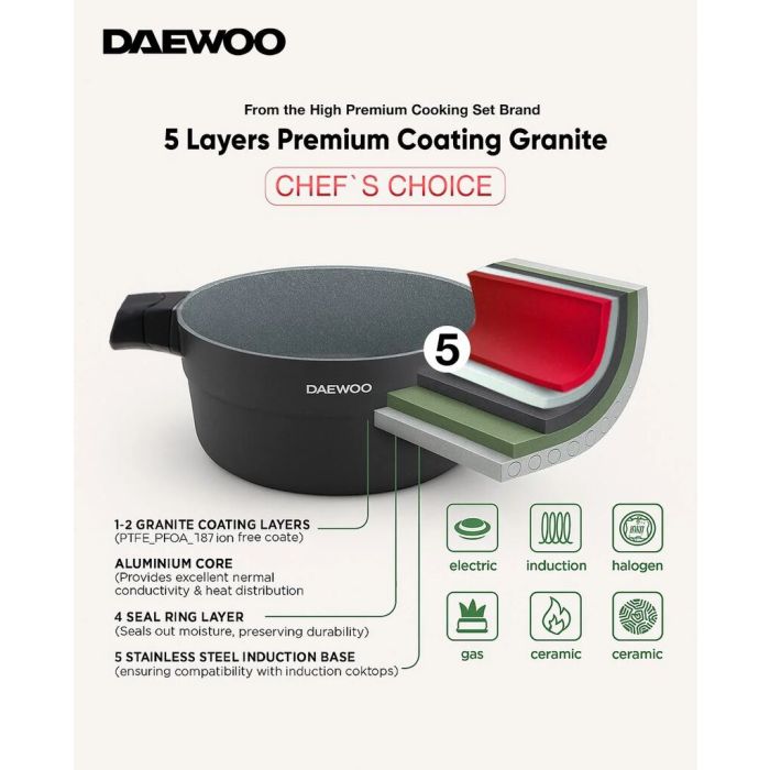 Elegant Daewoo Granite Casserole with Lid 28 cm